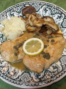 ⑤さらに白ワインを適量、ケイパーを30粒ほど、レモン半分を絞り、コンソメの溶かしたものを200mlほどを入れる。